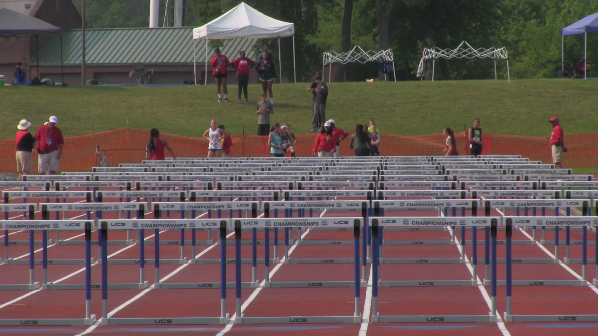 Description: A group of people standing around a track with a number of empty seats on it and a few people standing around.