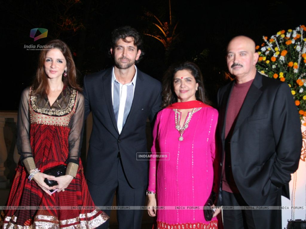 Description: A group of people standing next to each other in front of a tree at night time with lights on.