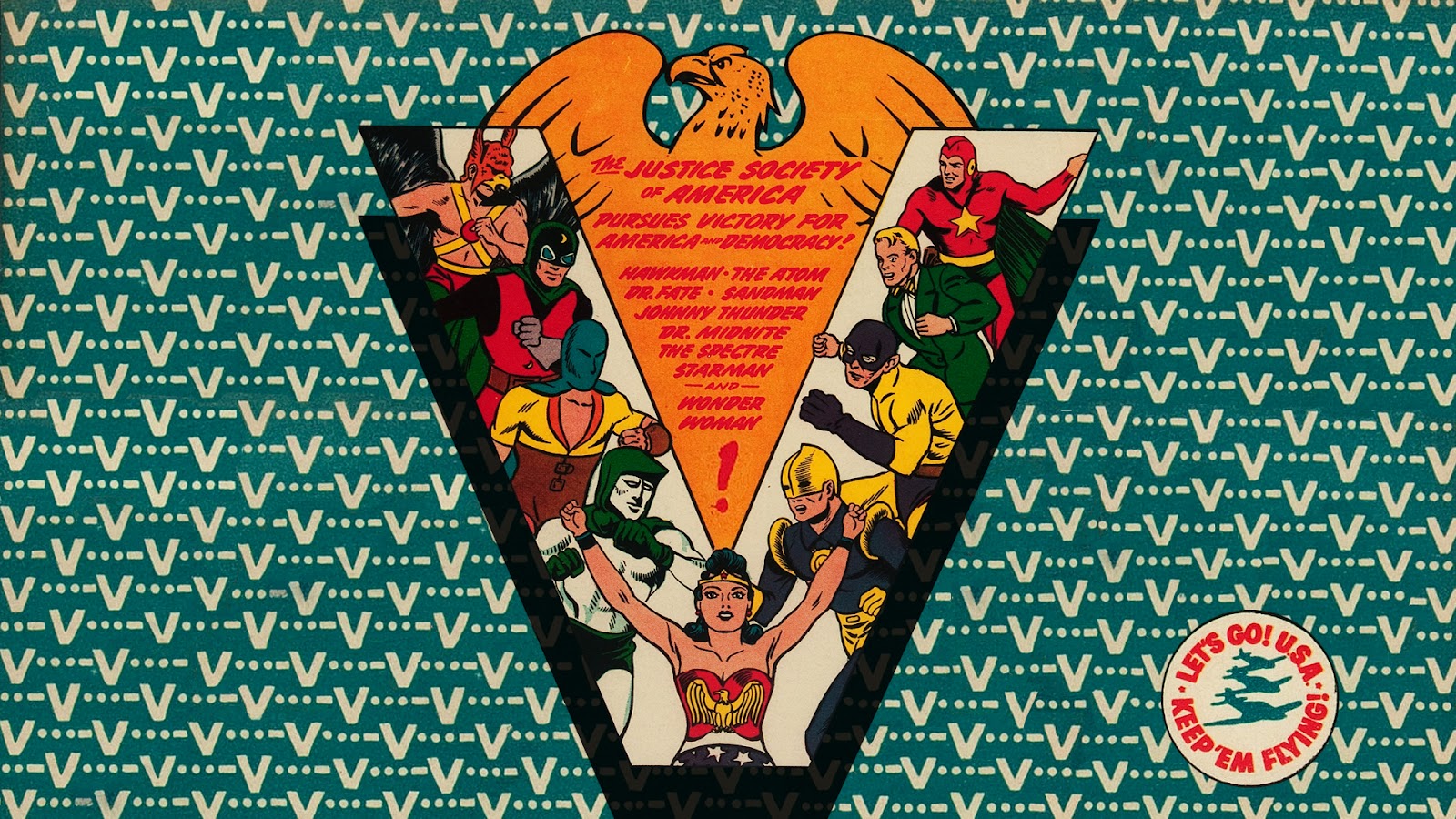 Description: A picture of a group of people on a wall with a triangle shaped poster in the middle of it.