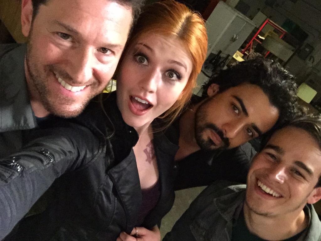 Description: A group of people posing for a picture together in a room with a table and chairs in the background.