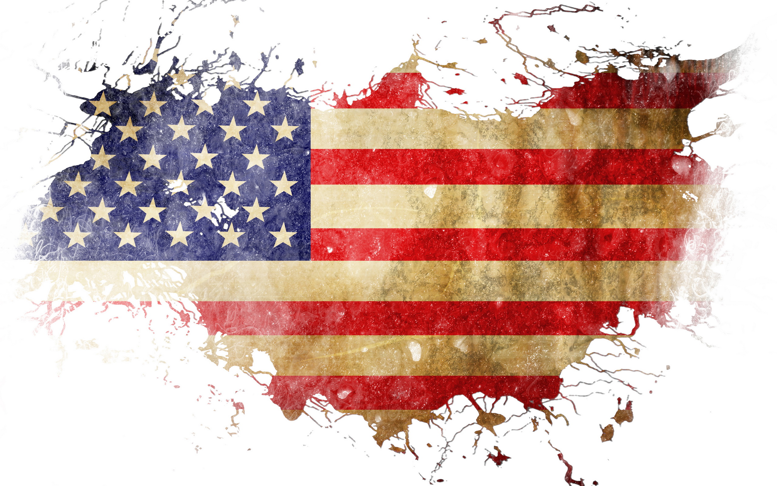 Description: A grungy american flag with a torn out piece of paper in the middle of it's image.