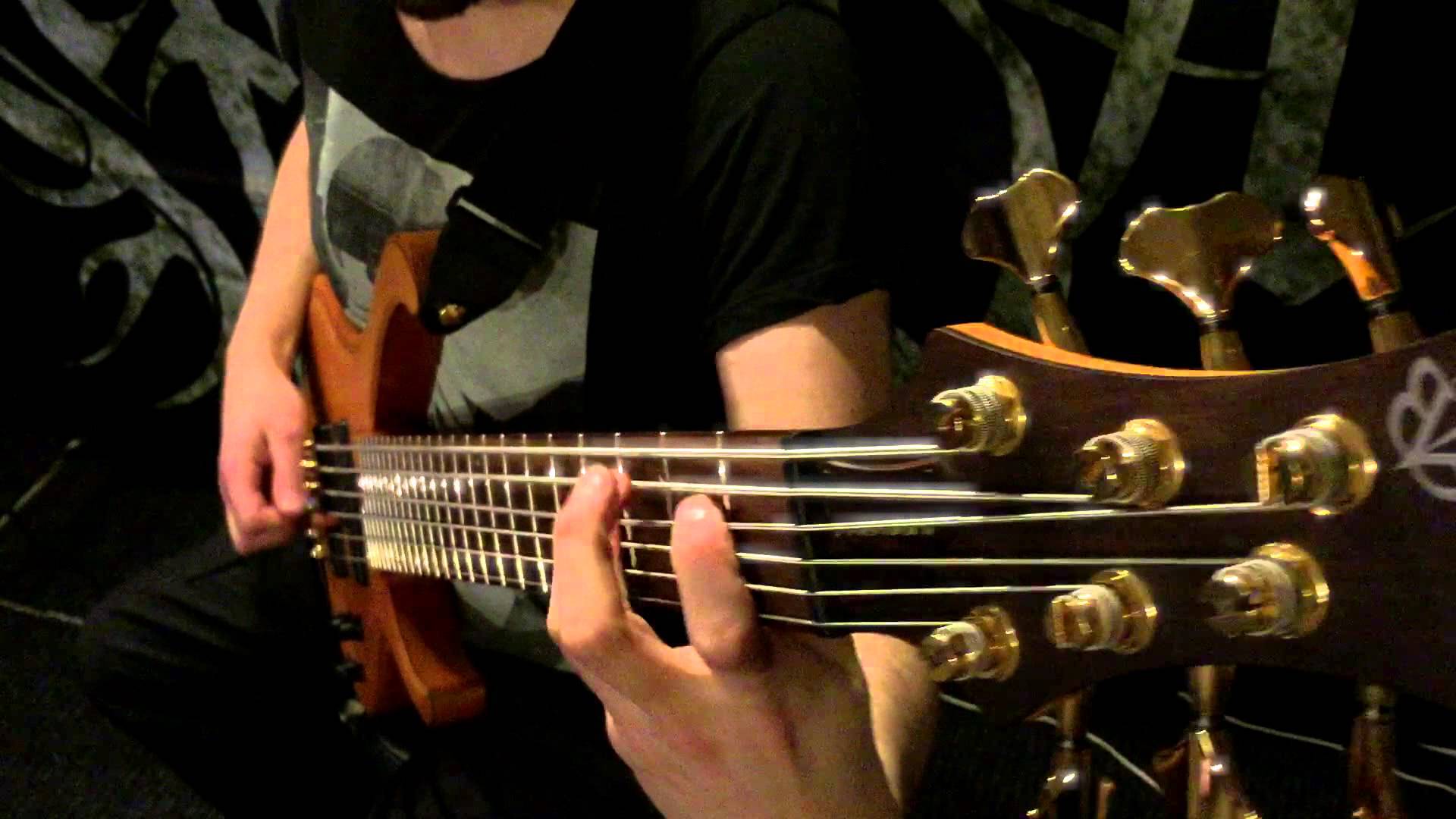 Description: A person playing a guitar with a black background and a black and white wallpaper behind them and a person holding a guitar.