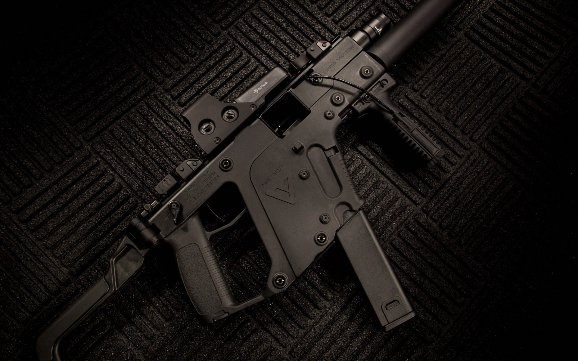Description: A gun laying on a carpeted floor with a black background and a black gun clipping out of it.