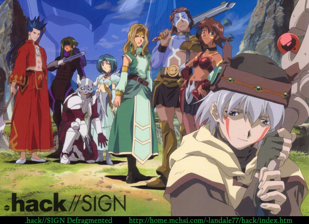 Description: A group of people standing around each other in a field with a sky background and a caption that reads hack / sign.
