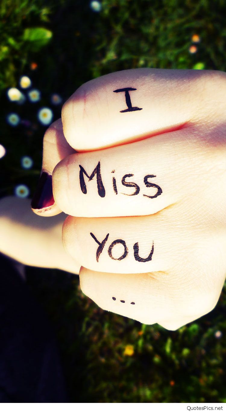 Description: A hand with a message written on it that says i miss you on it and a flower in the background.