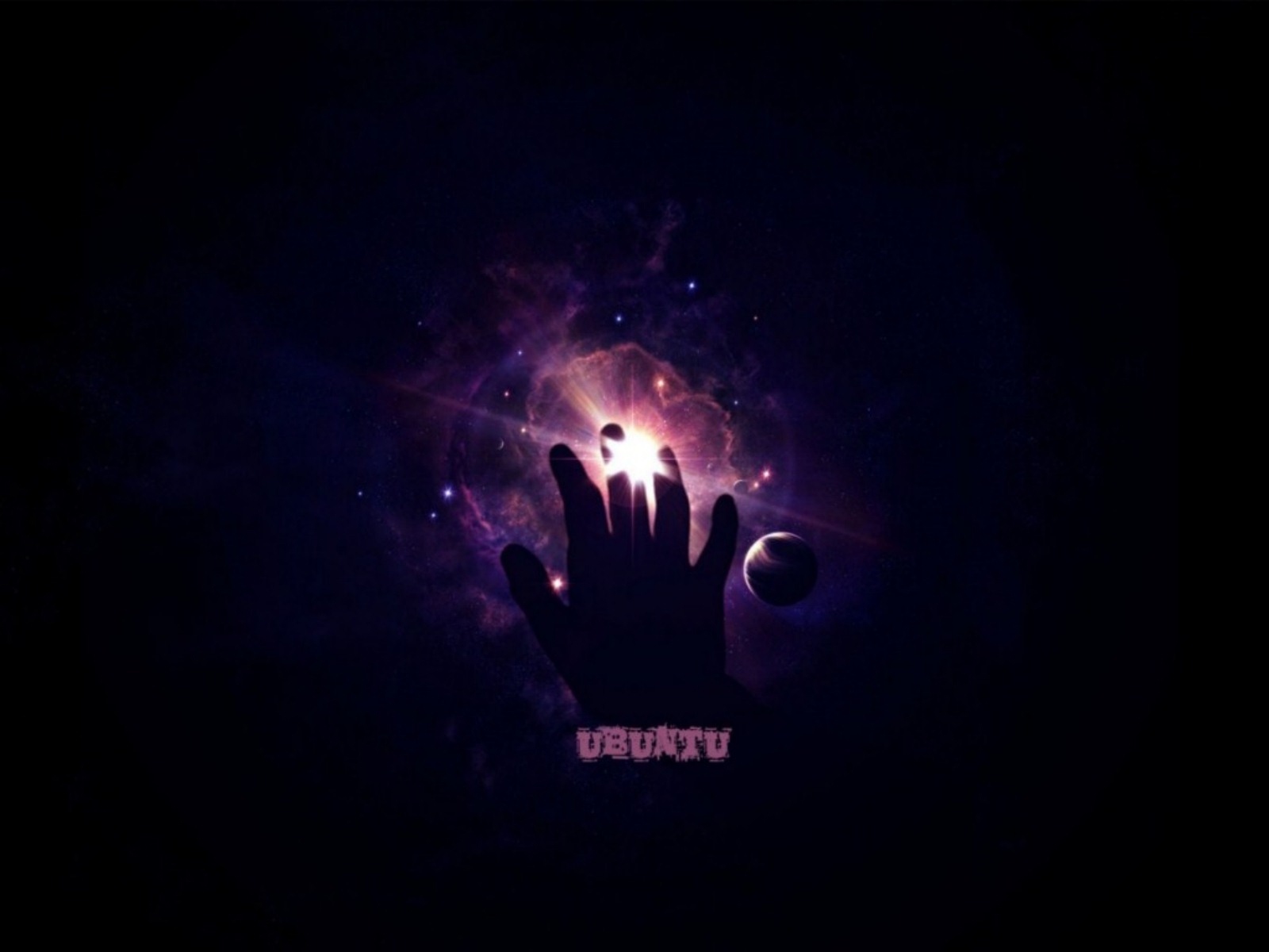Description: A hand reaching for a ball in the dark with the word ubun above it and a space background.