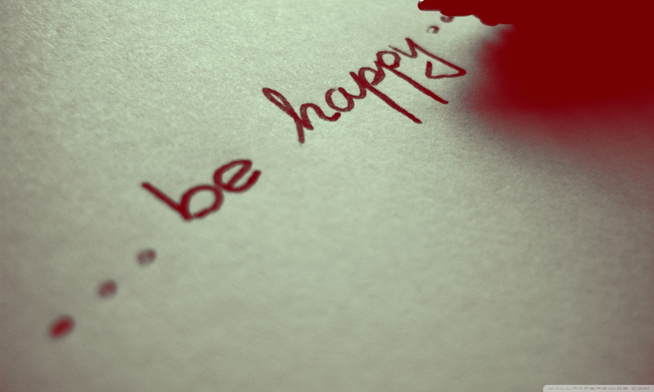 Description: A piece of paper with a red marker on it that says happy be happy on it and a red pen.