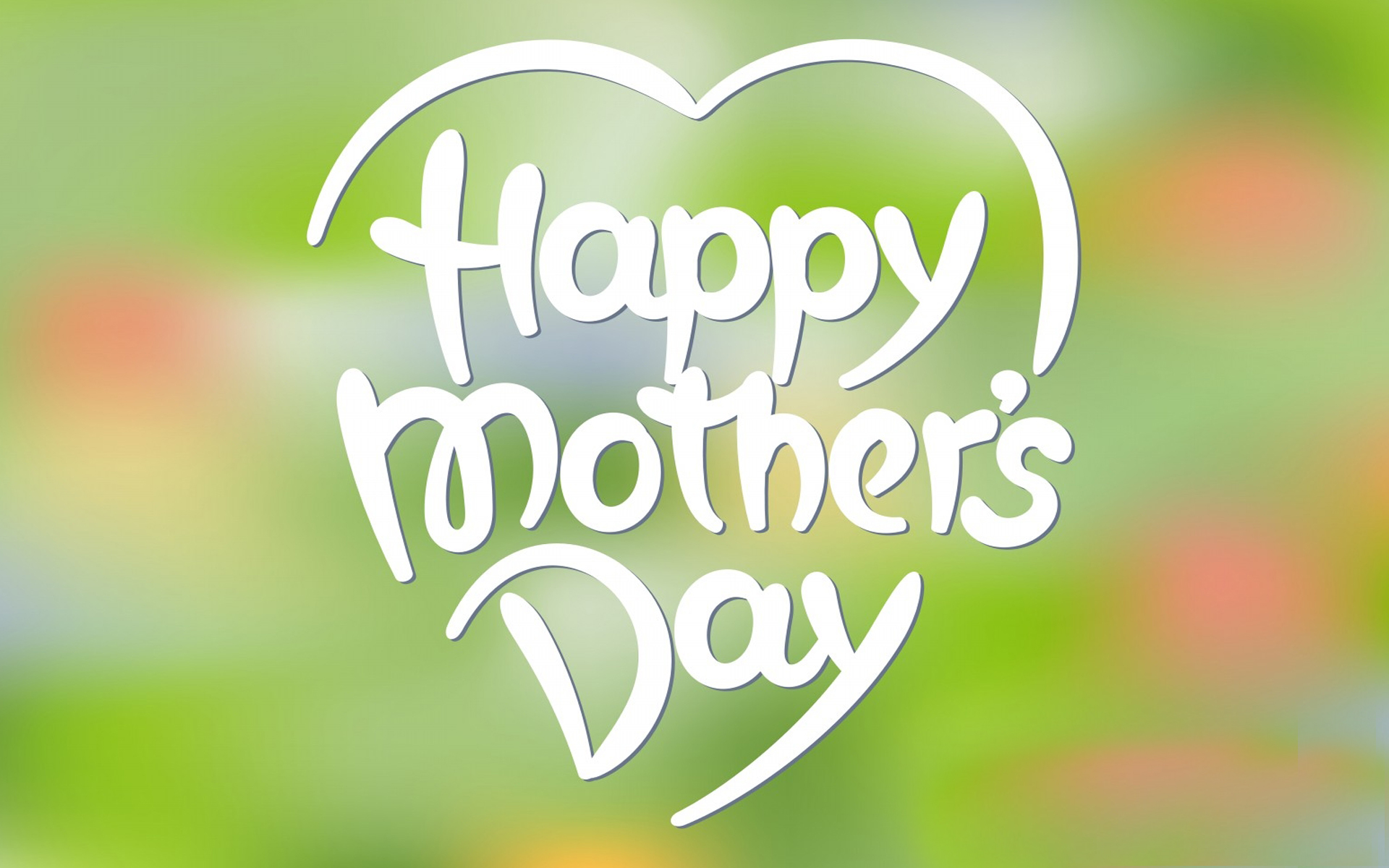 Description: A happy mother's day message on a blurred background with a heart shaped outline in the center of the image.
