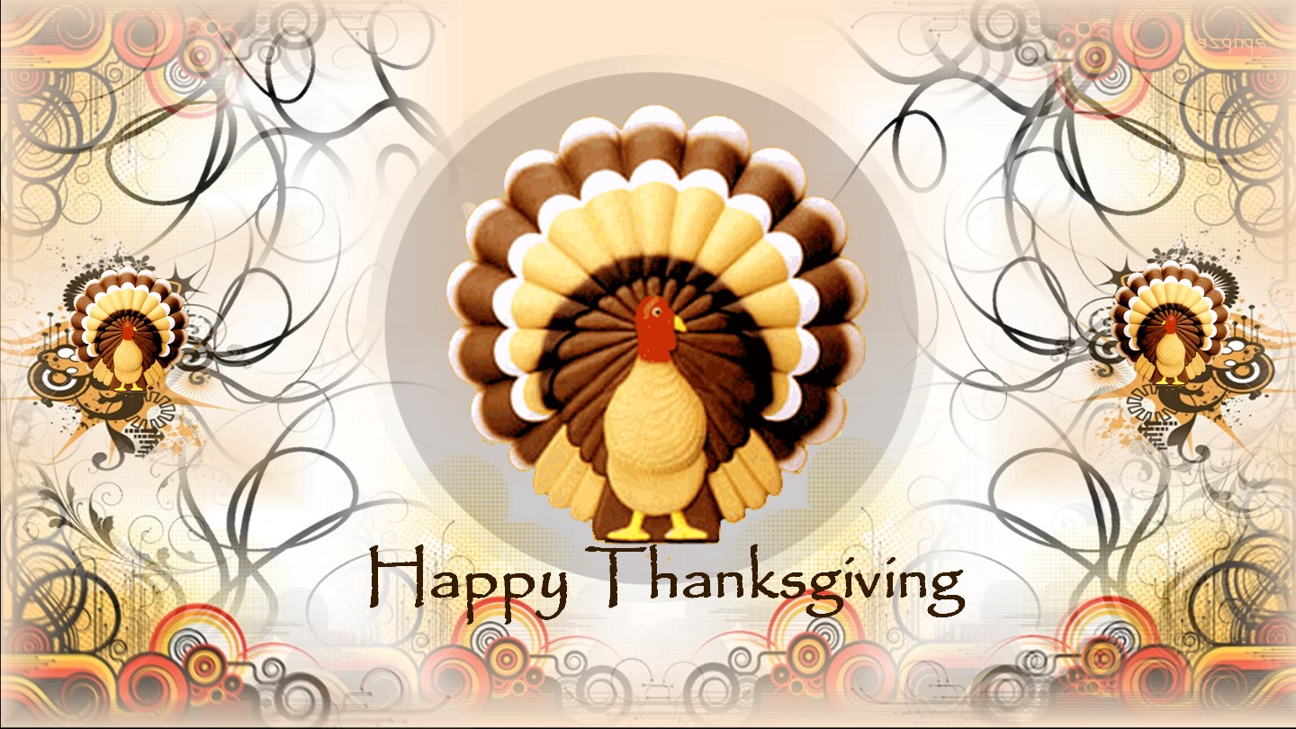 Description: A turkey with a happy thanksgiving message on it's face and a turkey on the side of it.