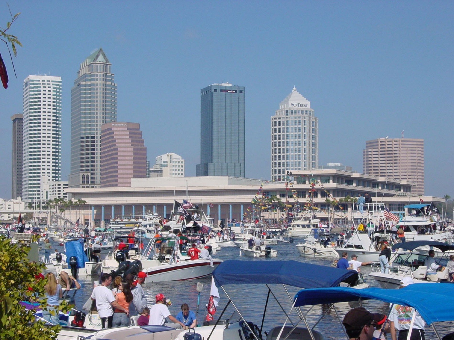 Description: A harbor filled with lots of boats and tall buildings in the background of a city skyline with tall buildings.