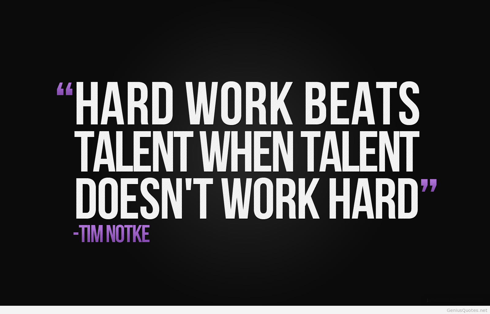 Description: A quote that reads hard work beats talent when talent doesn't work hard'' timnote.