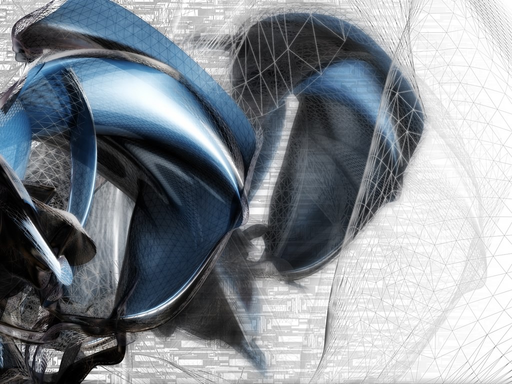 Description: A computer generated image of a pair of headphones on a computer screen with a background of lines and shapes.