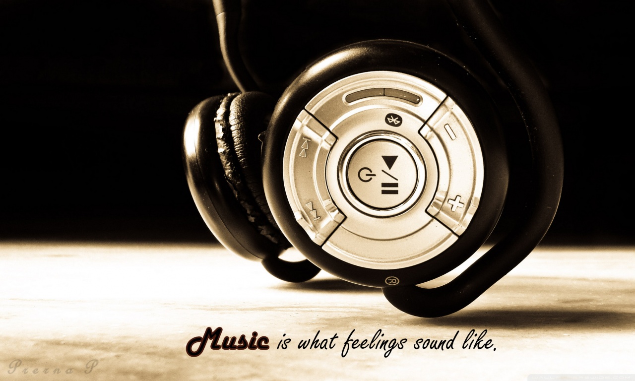 Description: A pair of headphones with a quote on it that says music is just feelings sound life on the side.