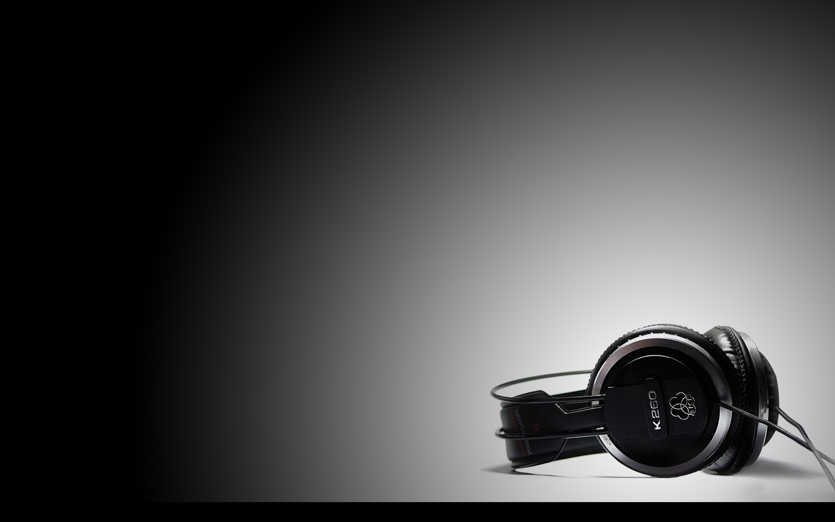 Description: A pair of headphones sitting on top of a table next to a wall with a black background and a white background.