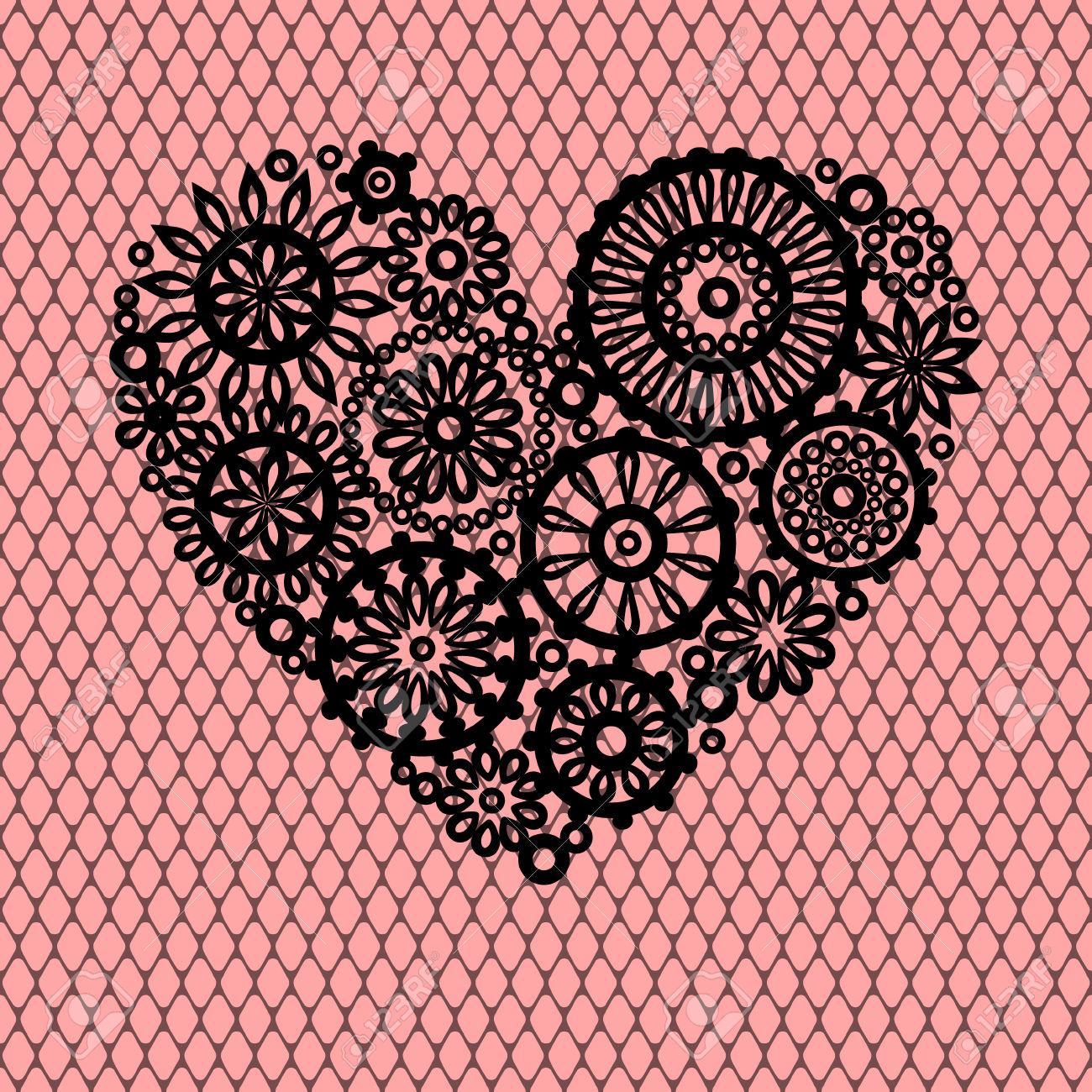 Description: A heart made out of lacy doily on a pink background stock photo - 1387992.