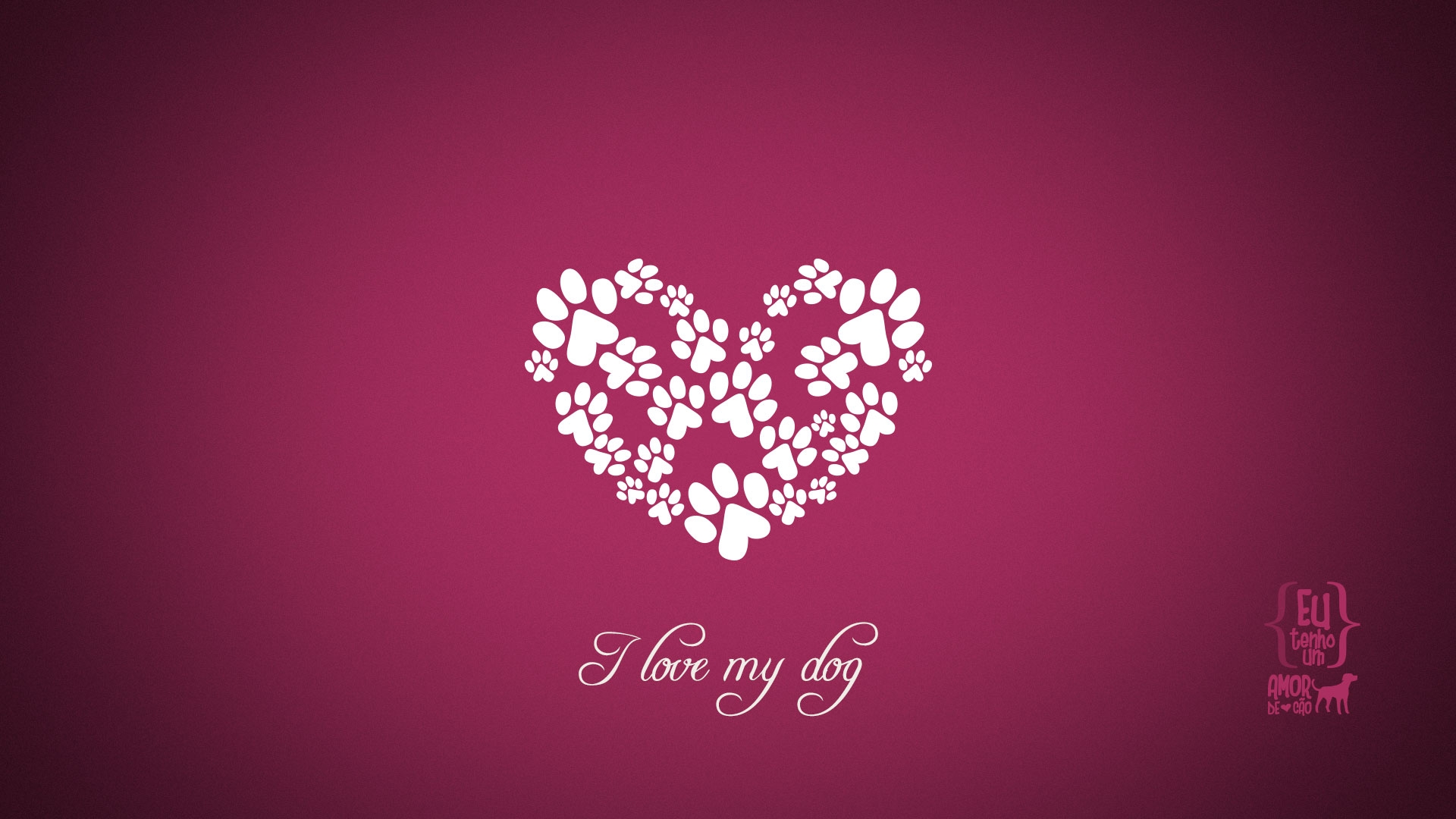 Description: A heart made out of paw prints on a pink background with the words i love my dog written below.