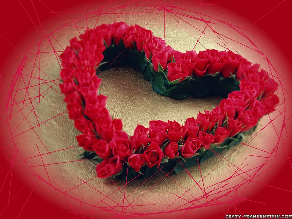 Description: A heart made of red roses on a red background with a red background and a red background with a red background.