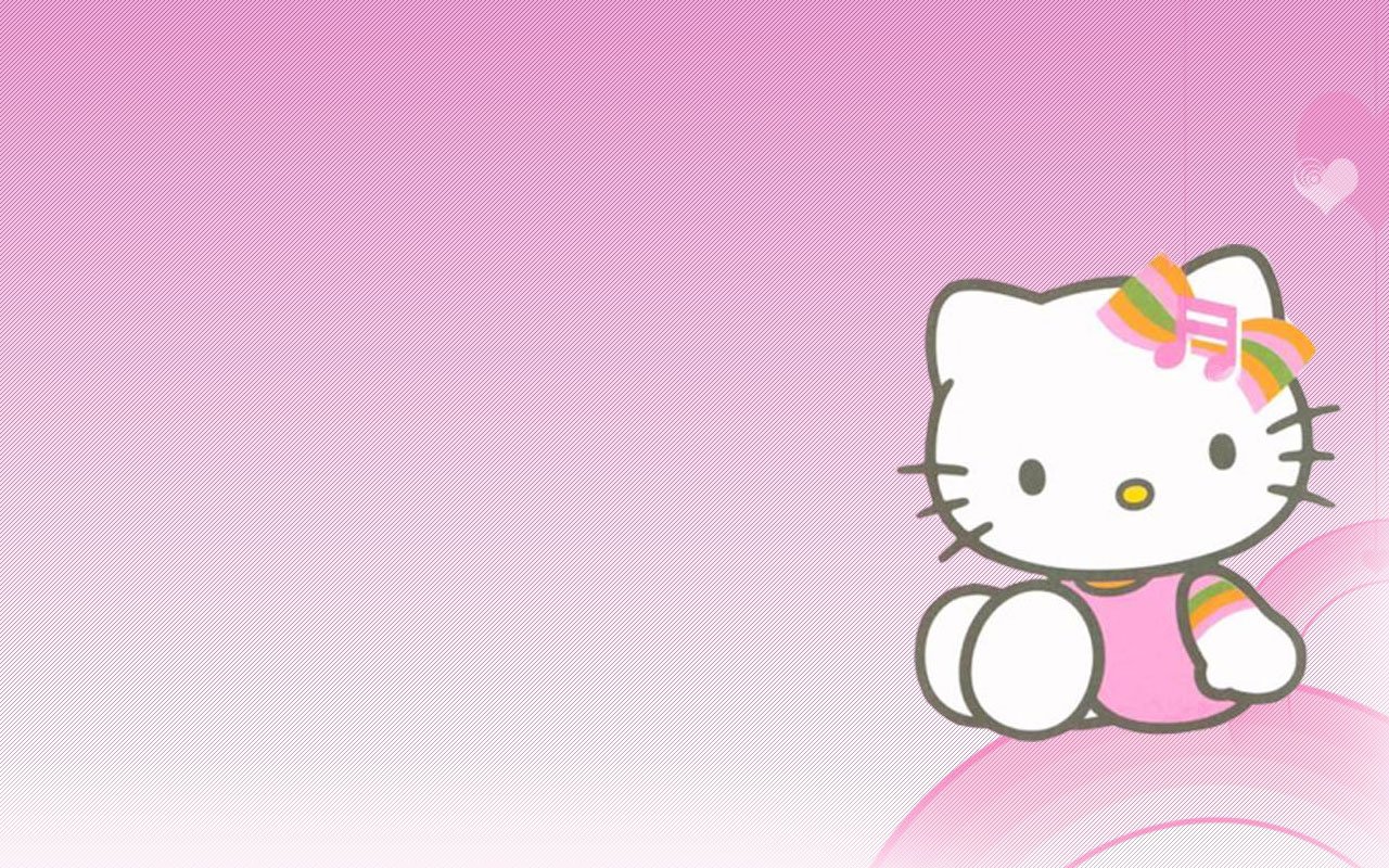 Description: A hello kitty wallpaper with a pink background and a pink bow on top of it's head.