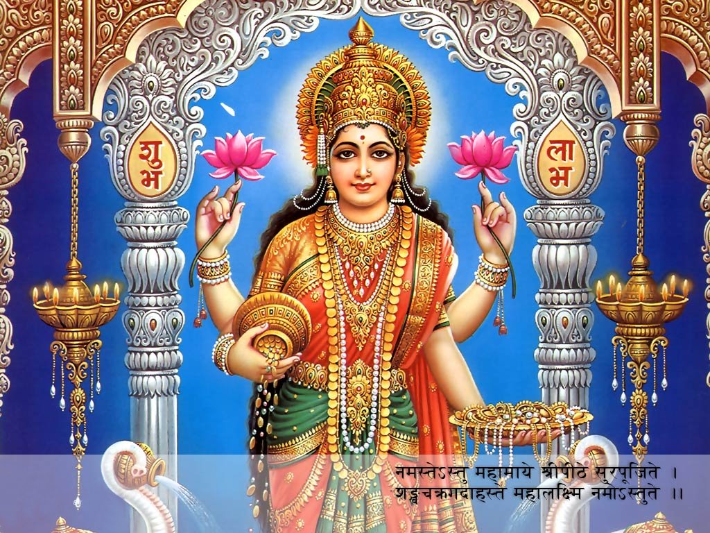 Description: A painting of a hindu god with a lotus in his hand and a lotus in his hand.