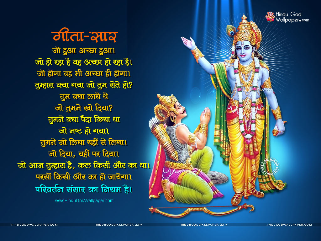 Description: A hindu religious message with a god and a woman in the background with a blue background and a blue background.
