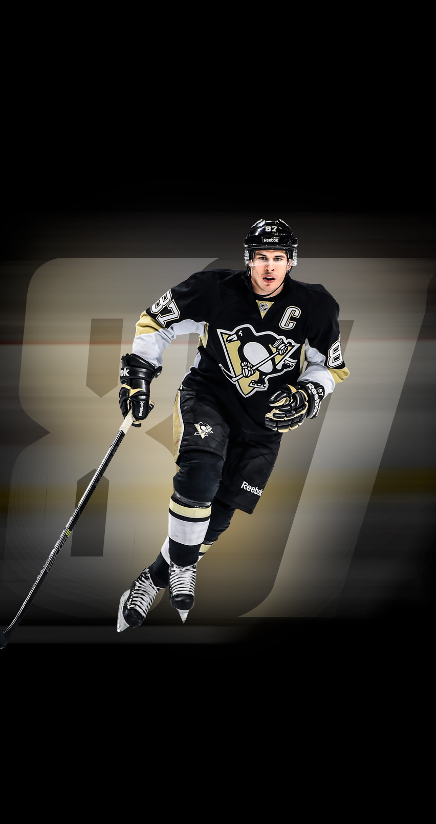 Description: A hockey player is running with the puck in his hand and a number on the side of the picture.