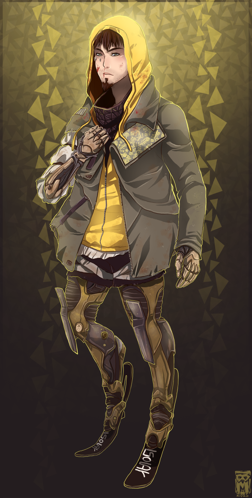 Description: A drawing of a person with a hoodie on and a yellow shirt on.