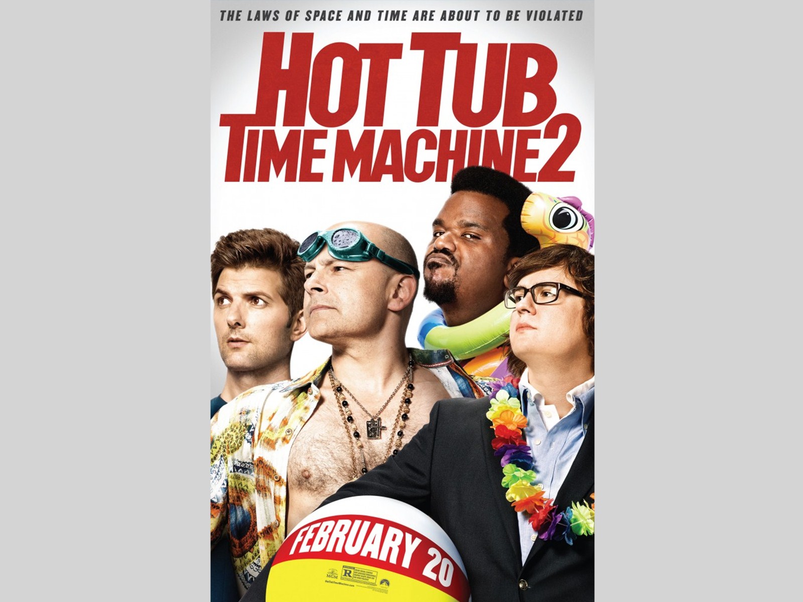 Description: A movie poster for the movie hot tub time machine 2 with a man in a suit and a woman in a bikini.