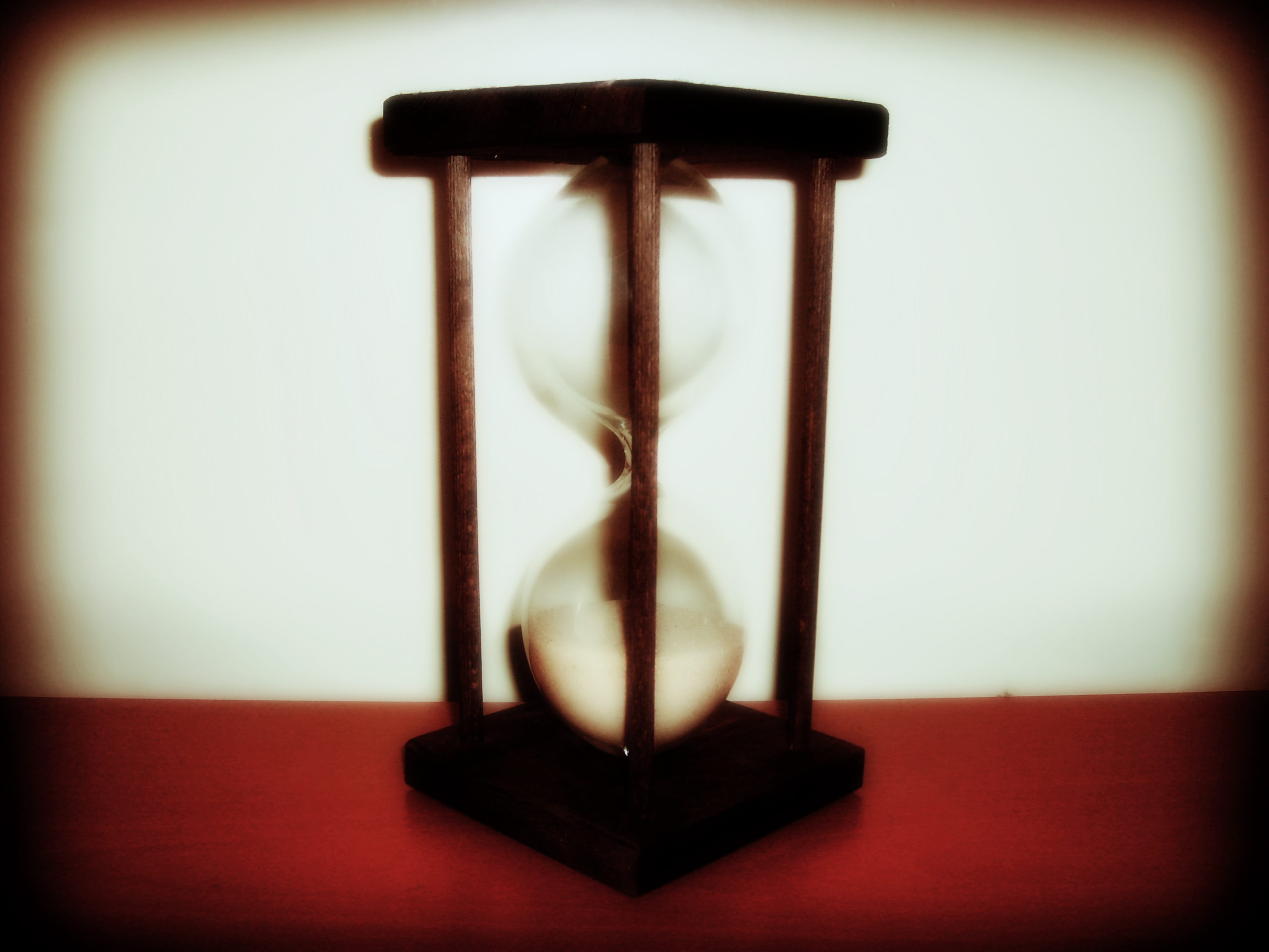 Description: A hourglass with a person's face in the middle of it.