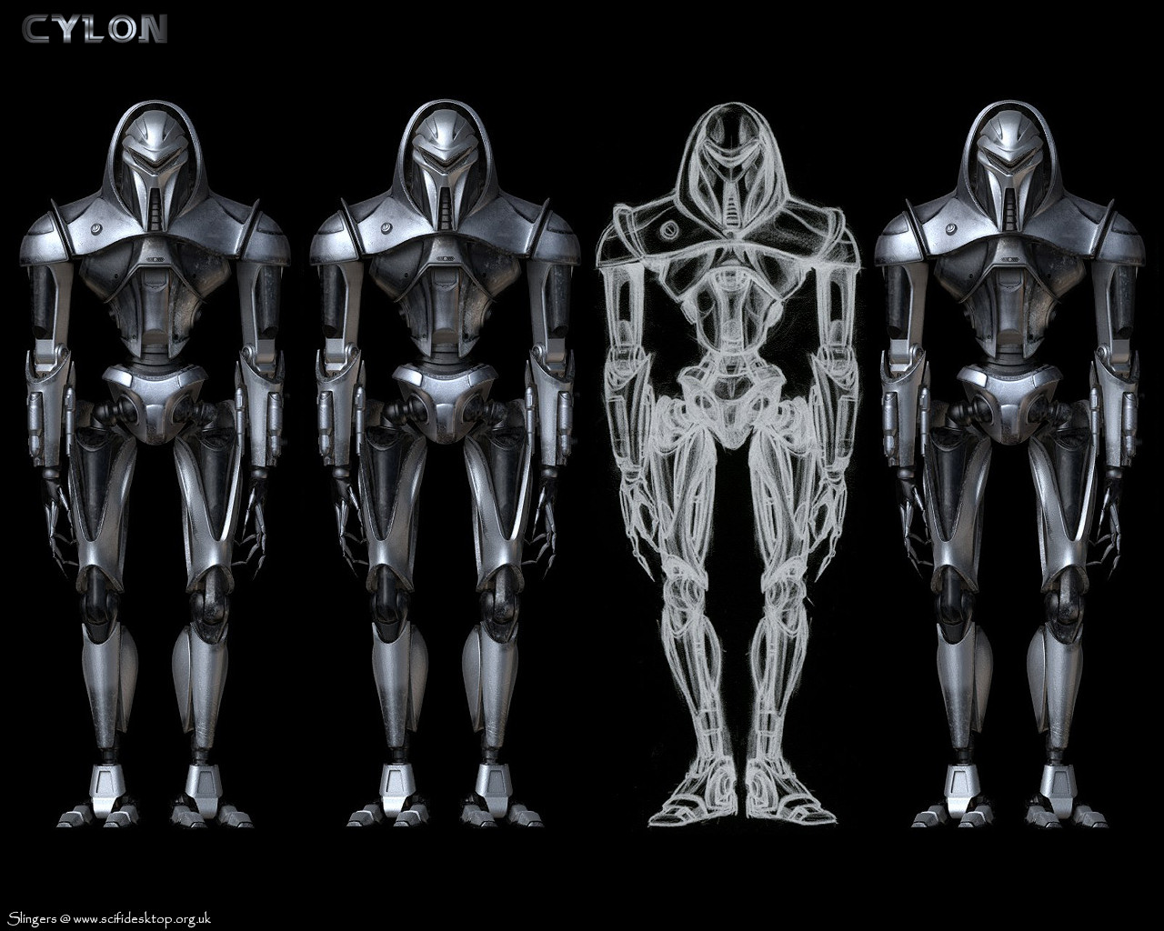 Description: A group of humanoids standing next to each other in a black background with a black background and a white background.