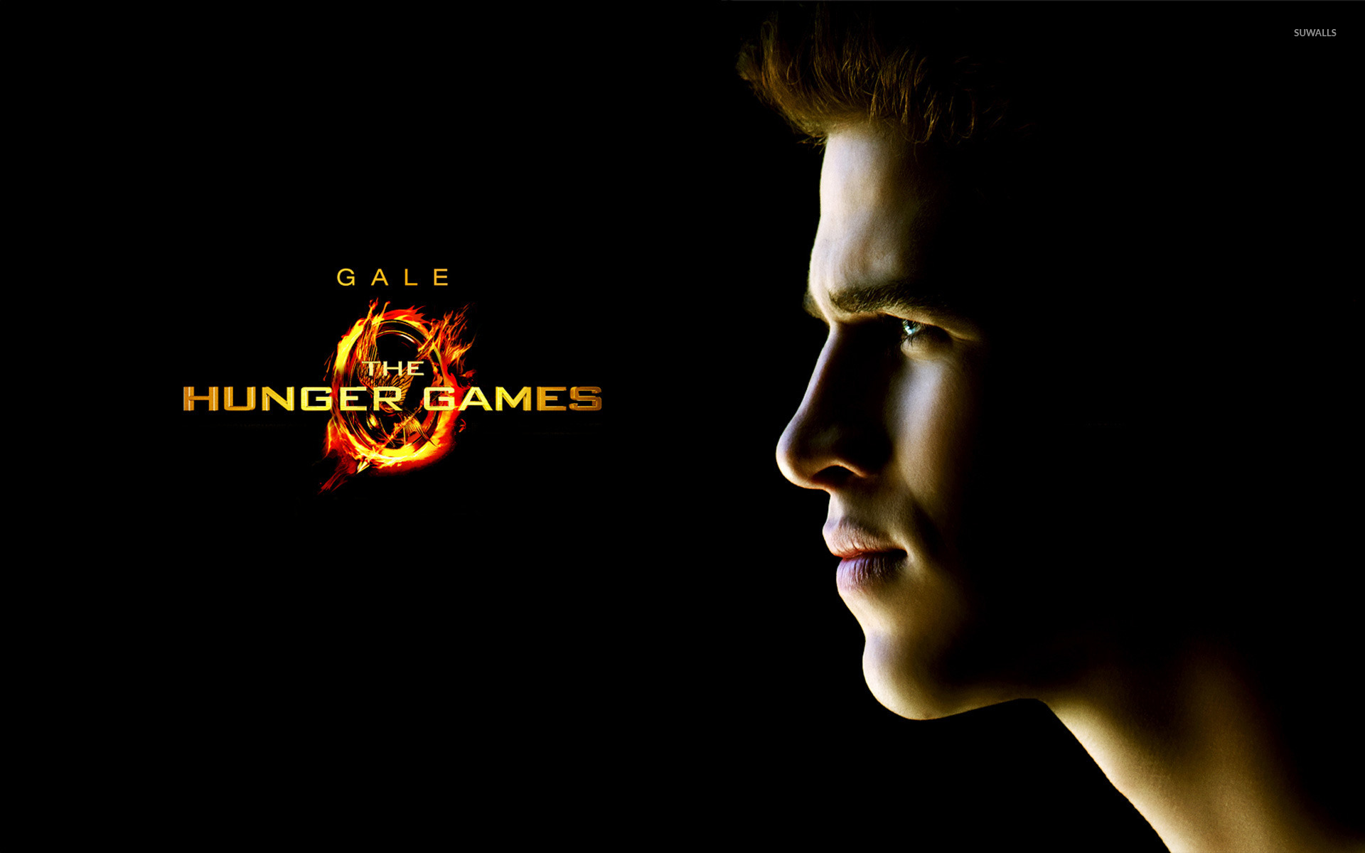 Description: A man with a ring on his face in the dark with the title of the movie the hunger games.