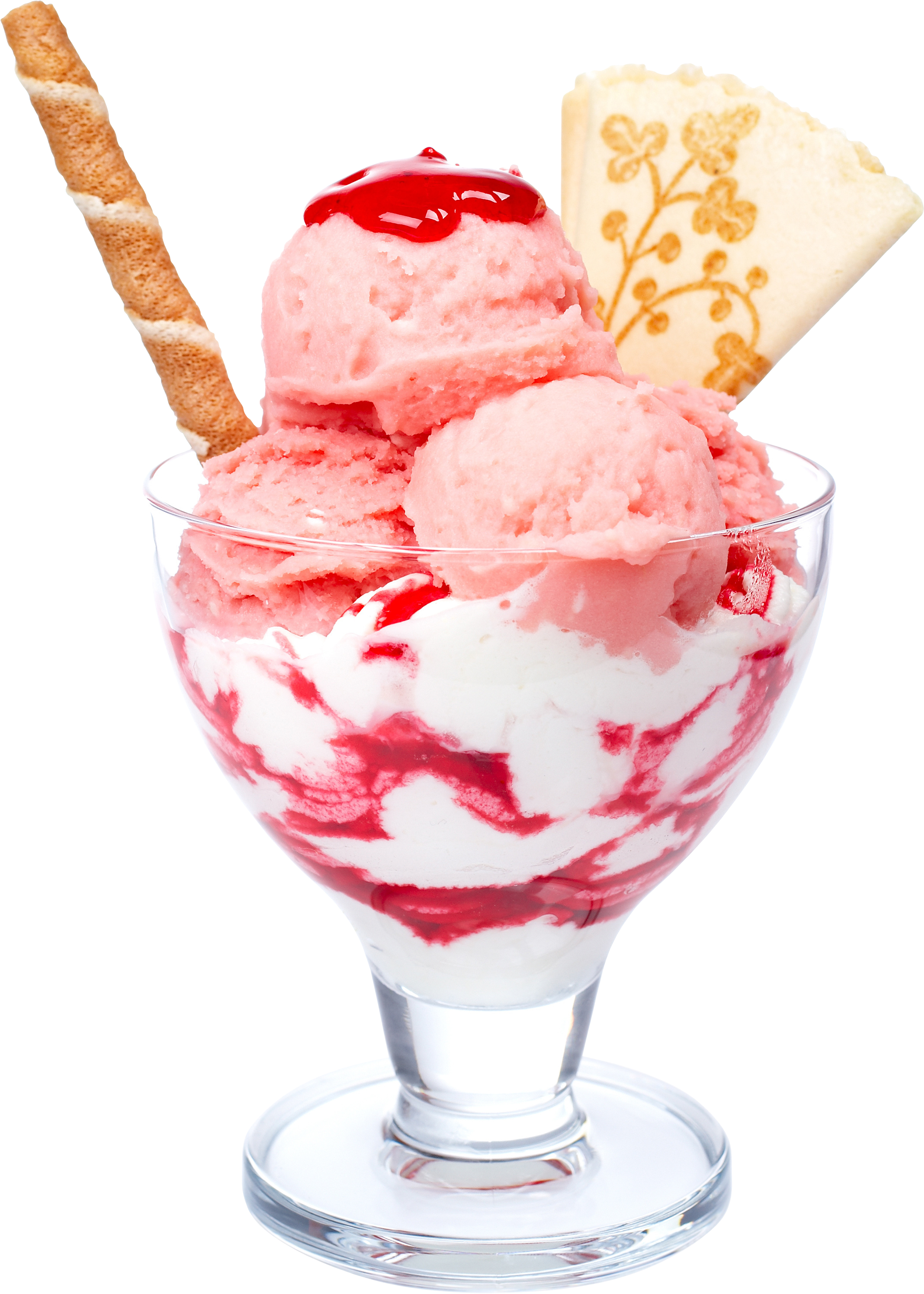 Description: A glass bowl filled with ice cream and a cookie on top of it with a spoon in it and a piece of bread on the side.