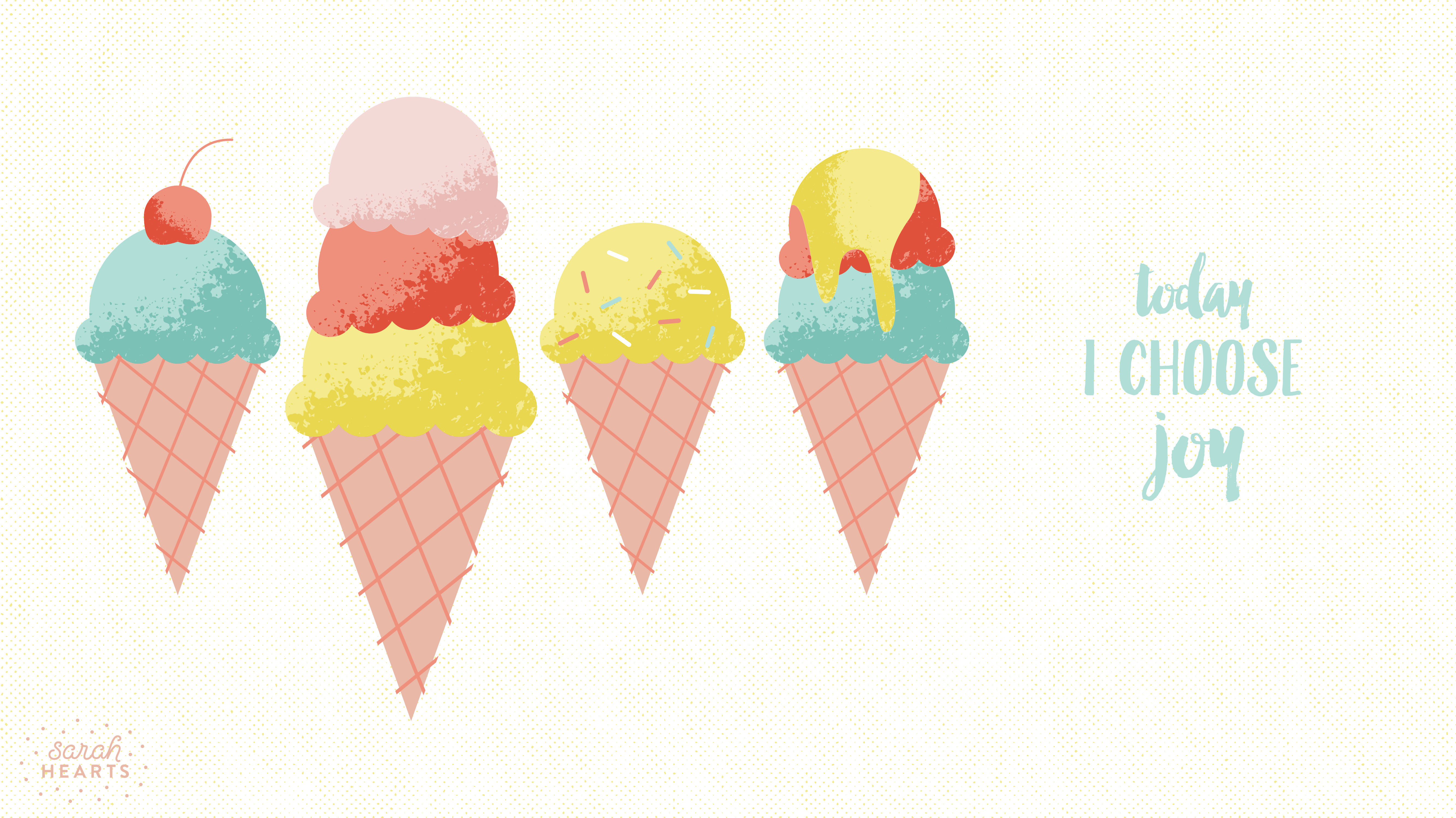 Description: A group of ice cream cones with a cherry on top of them and the words today i choose joy.