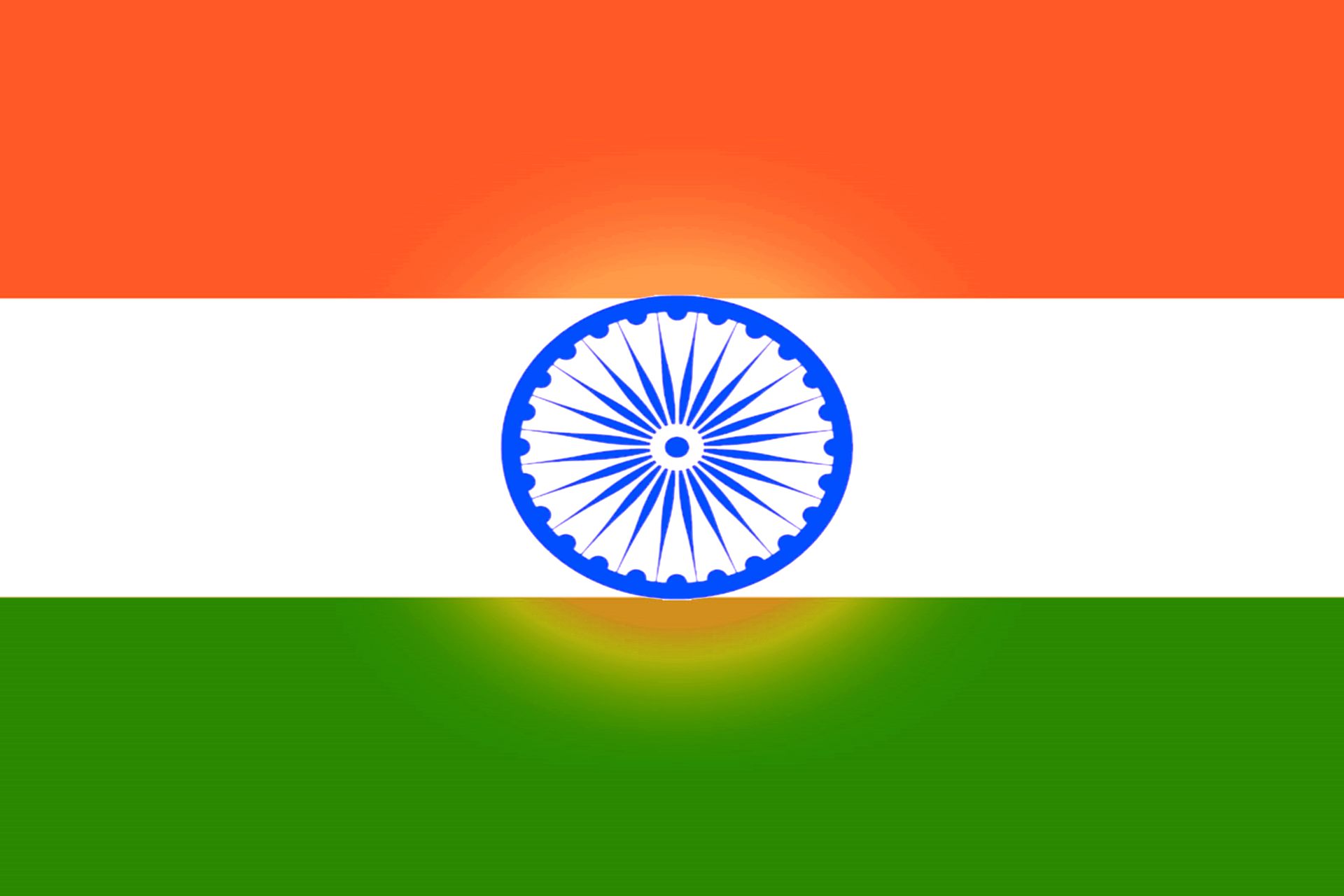 Description: The indian flag with a circular design on it's side and a green.