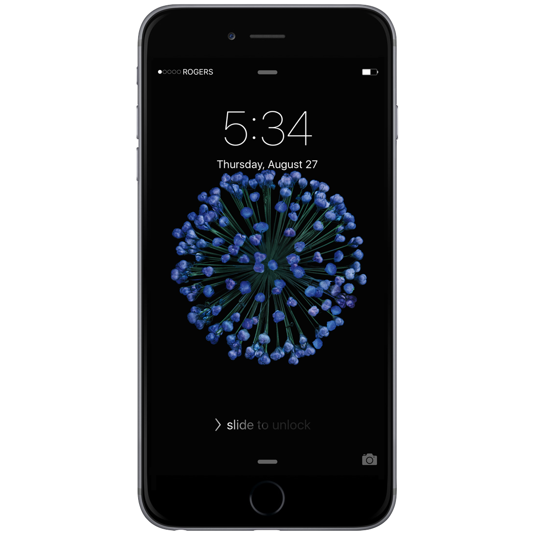 Description: An iphone with the time displayed on the screen and the date circled in blue flowers on the screen.