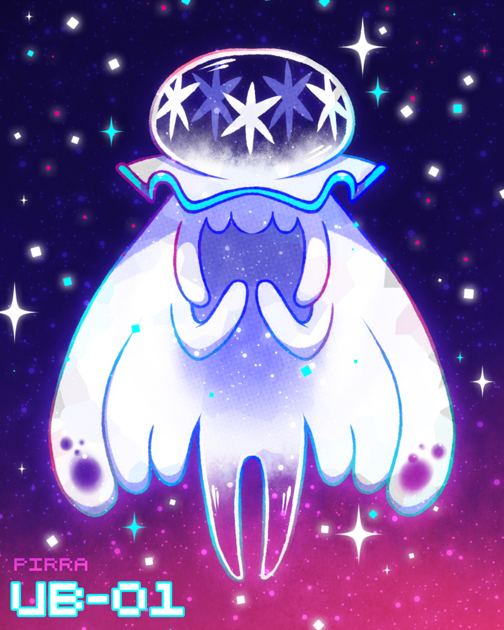 Description: A stylized image of a jellyfish with stars in the background and a purple background with stars in the bottom.