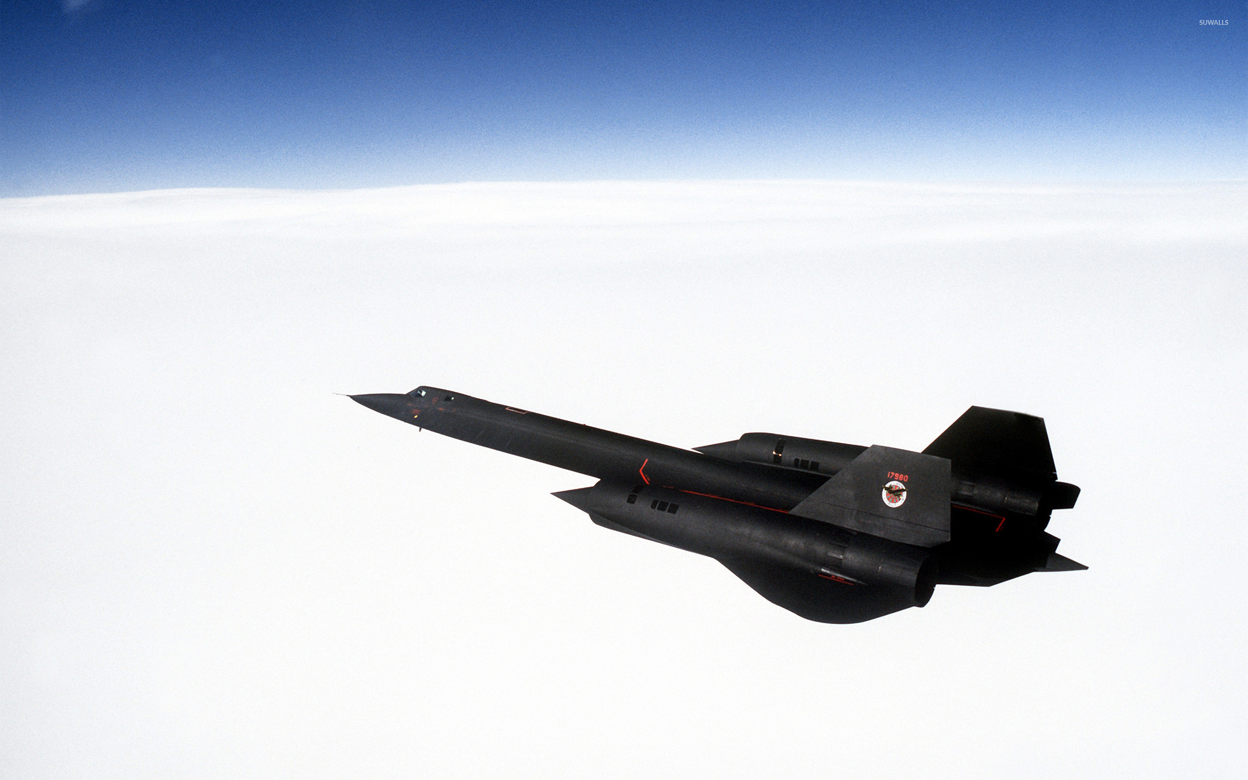 Description: A jet flying through the air with a sky background behind it and a cloud in the background with a red stripe.