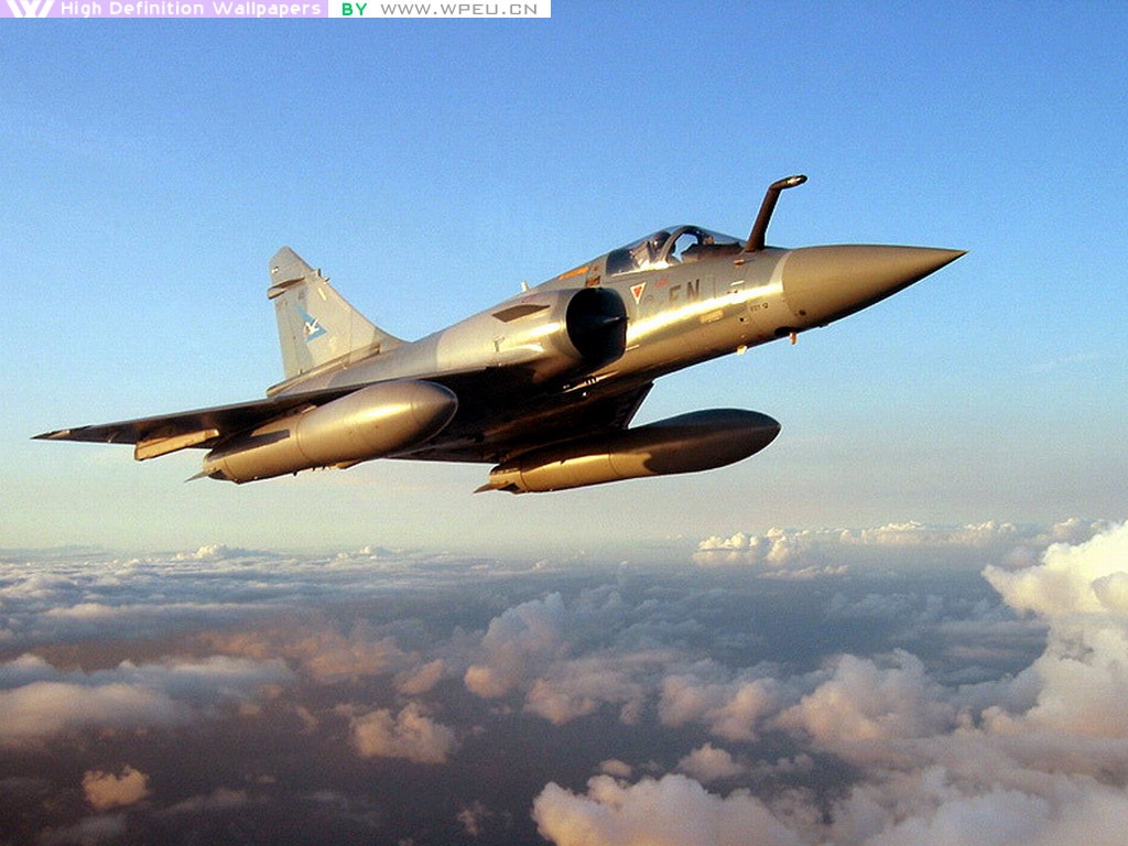 Description: A jet flying through the sky above clouds and clouds below it is a blue sky with white clouds and a few white clouds.