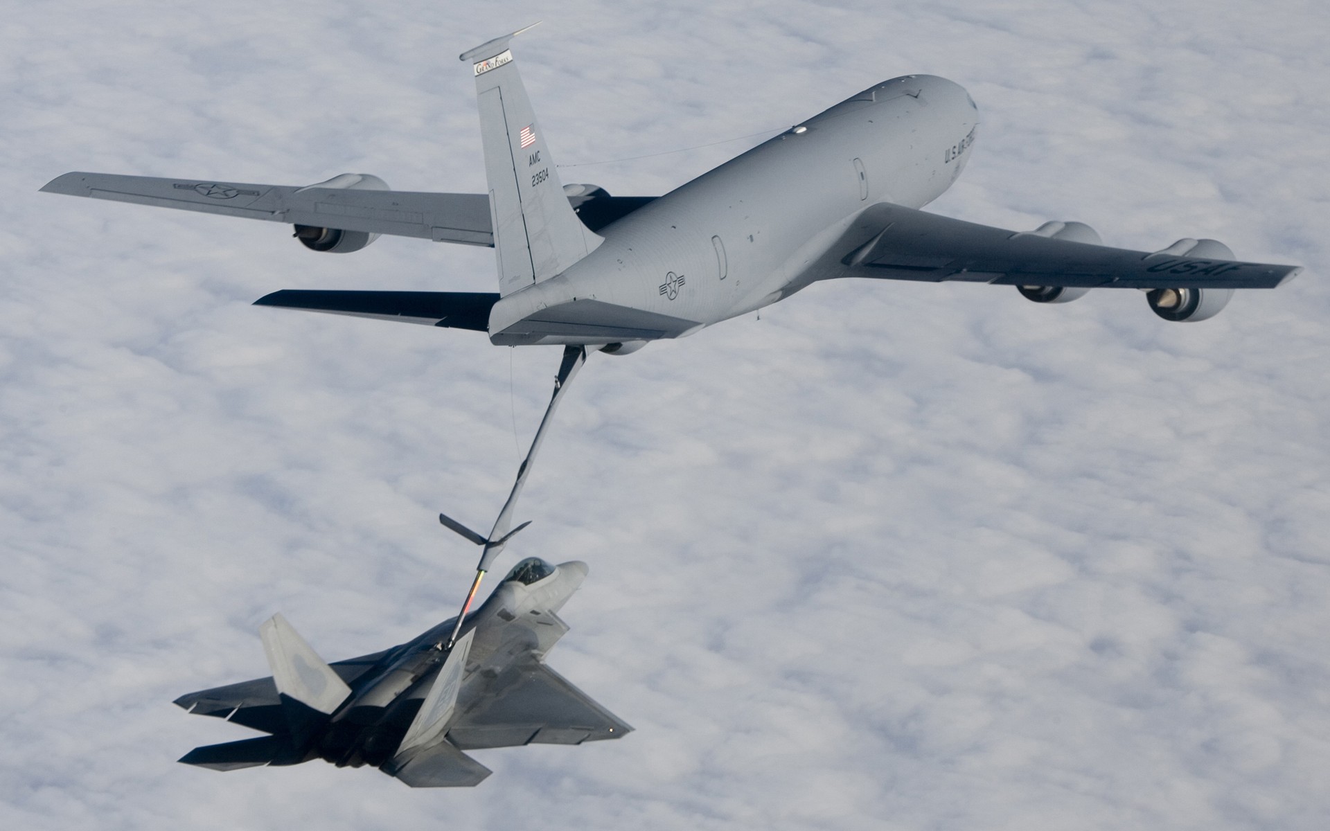 Description: A jet plane is being towed by a jet plane in the sky above the clouds and a jet plane.