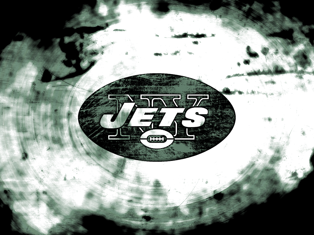 Description: A black and white picture of a jets logo on a disc with a black background and white circles around it.