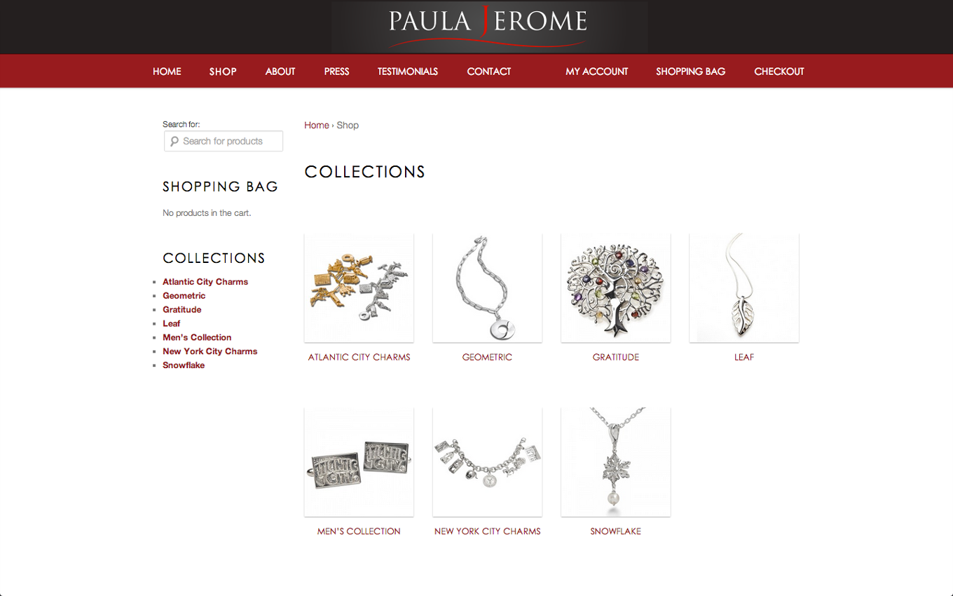 Description: A website page for a jewelry store with a red background and a white background with a red border and a red and black border.