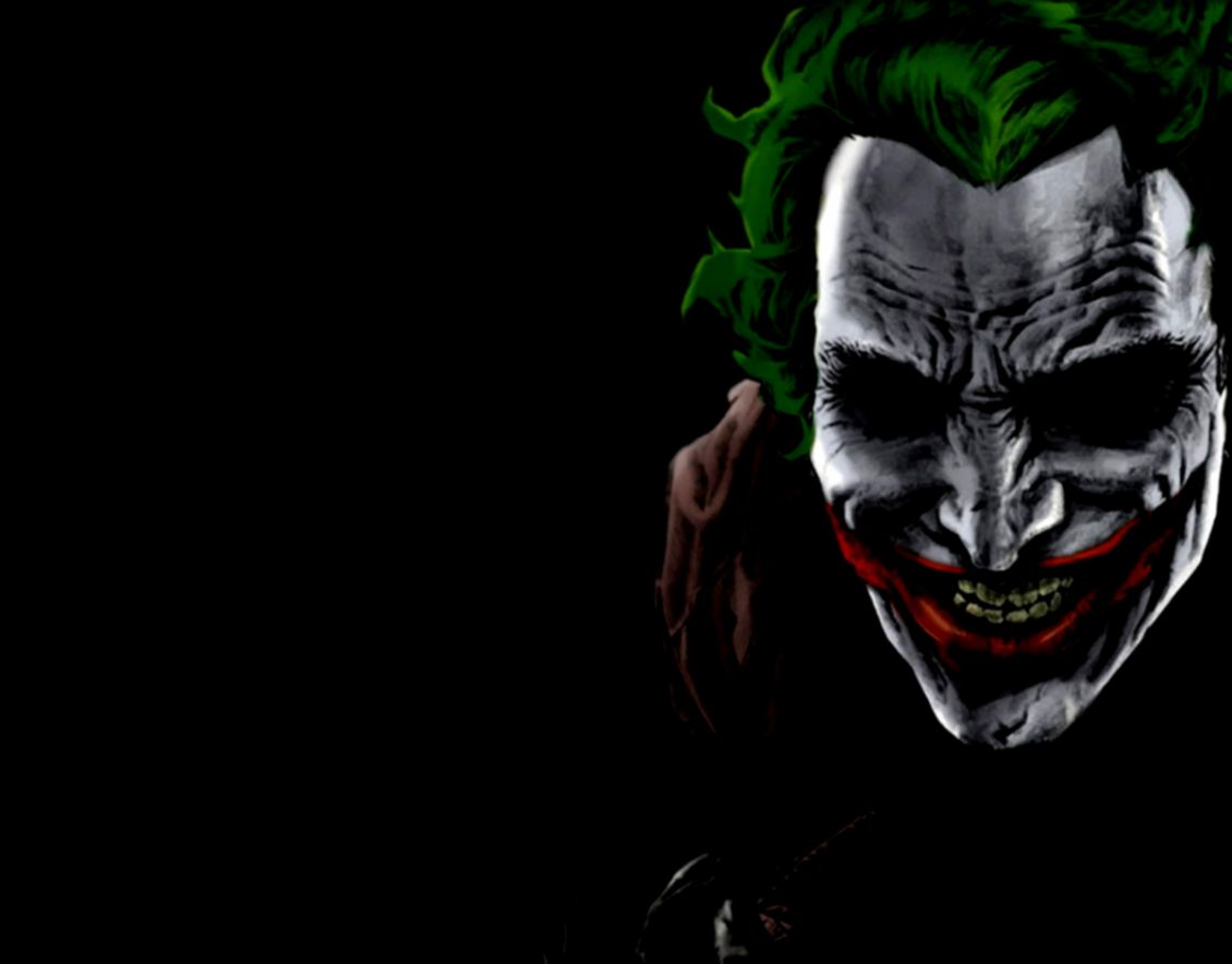 Description: A joker with green hair and a black background with a red nose and green hair and a black shirt.