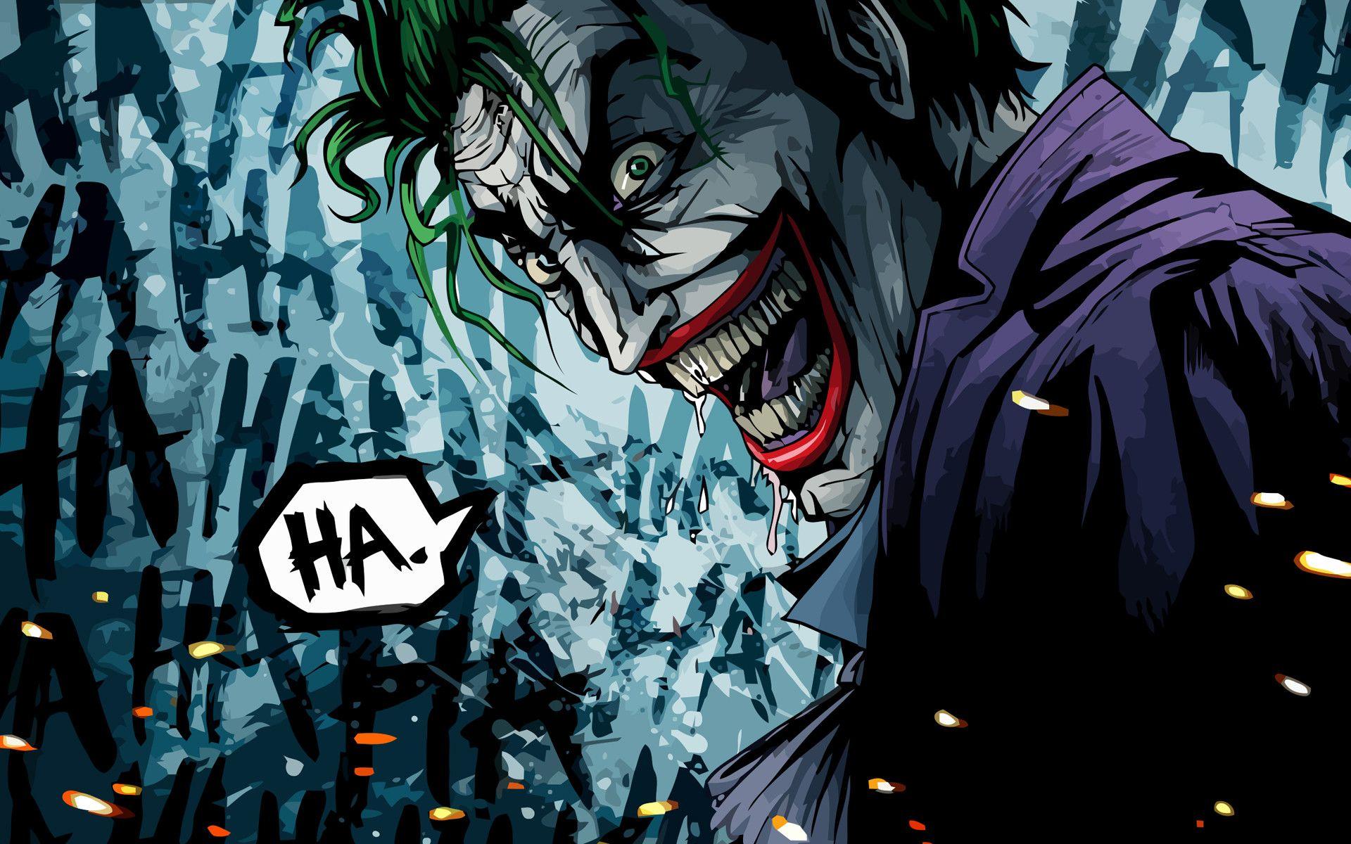 Description: A joker with a speech bubble in his hand and a background of graffiti and a comic character with a speech bubble.