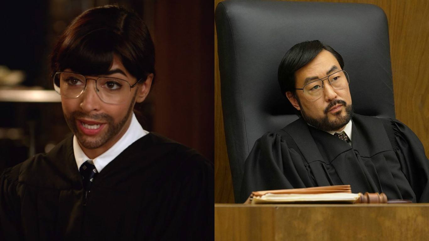 Description: A man in a judge's robes sitting in a chair next to a man in a judge's robes.