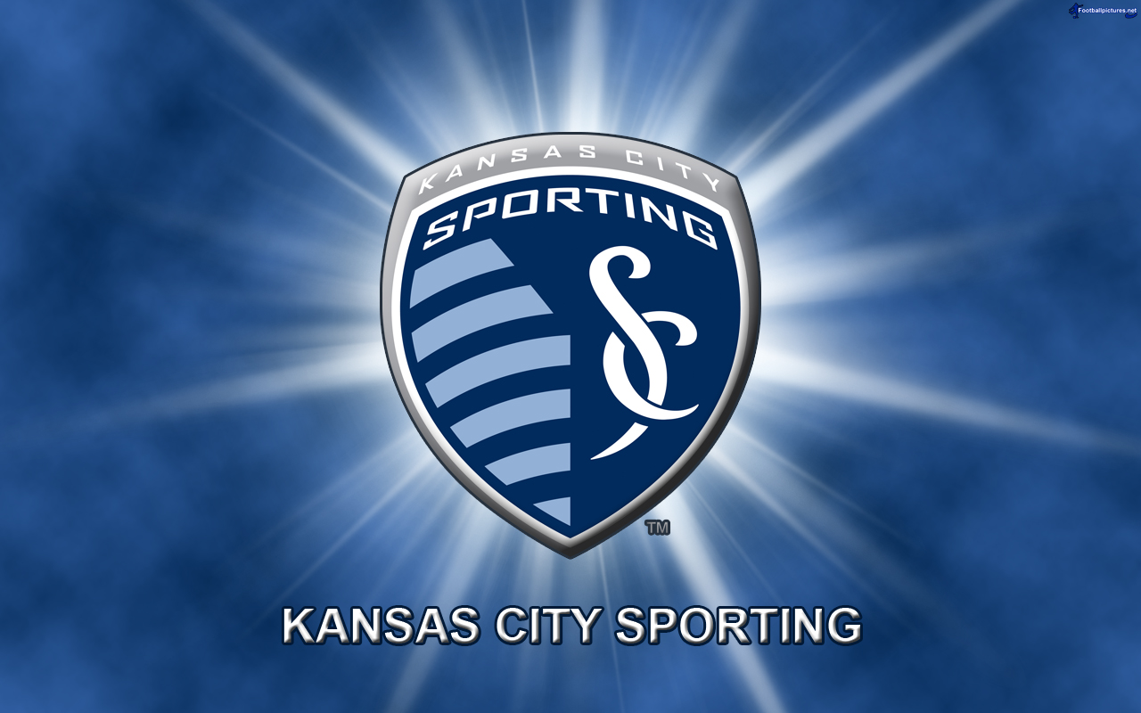 Description: A kansas city sporting logo on a blue background with a star burst in the background and the words sporting.