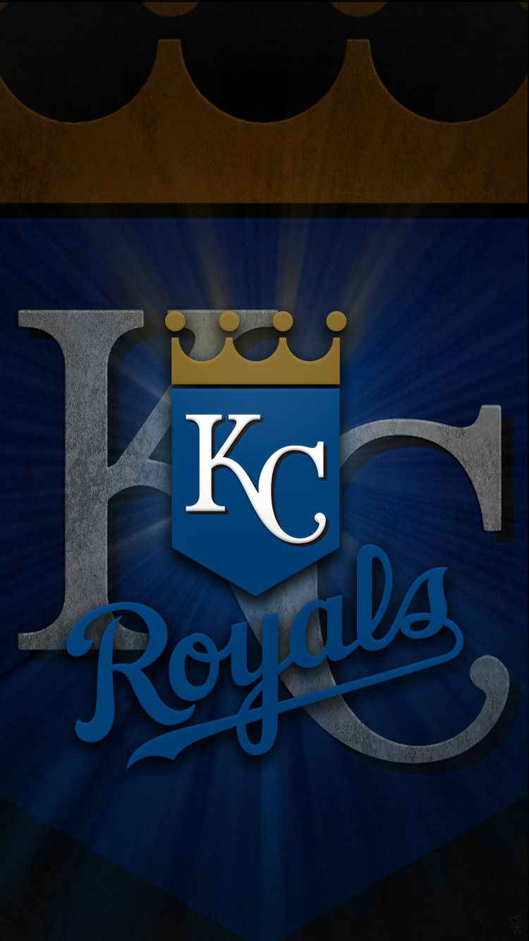 Description: A kansas royals logo on a blue background with a crown on top of it and the kansas royals logo below.