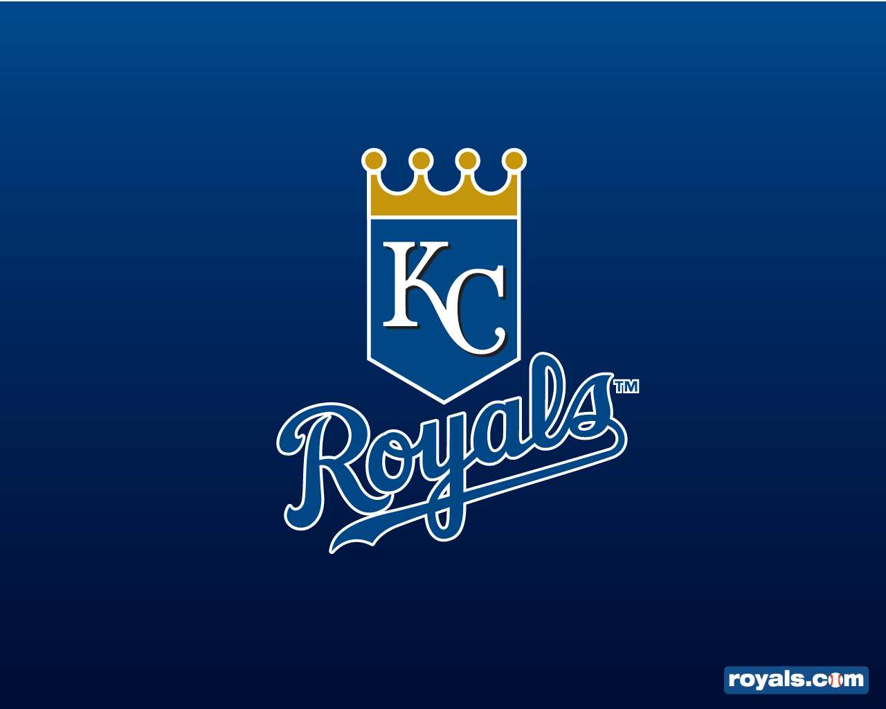 Description: The kansas royals logo on a blue background with a crown on top of it and the kansas royals logo below.