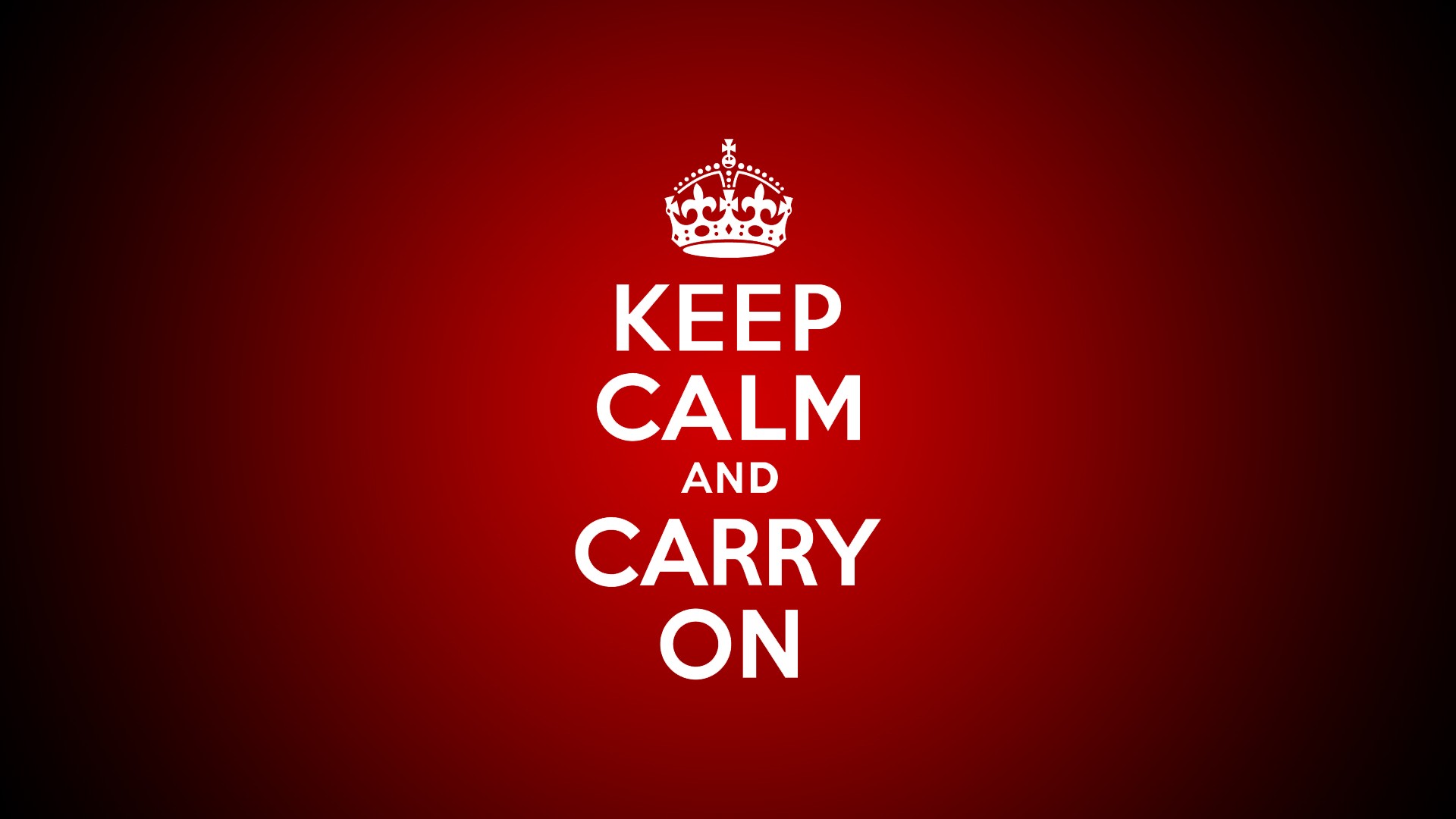 Description: A red and white keep calm and carry on poster with a crown on it's head and the words keep calm and carry on.