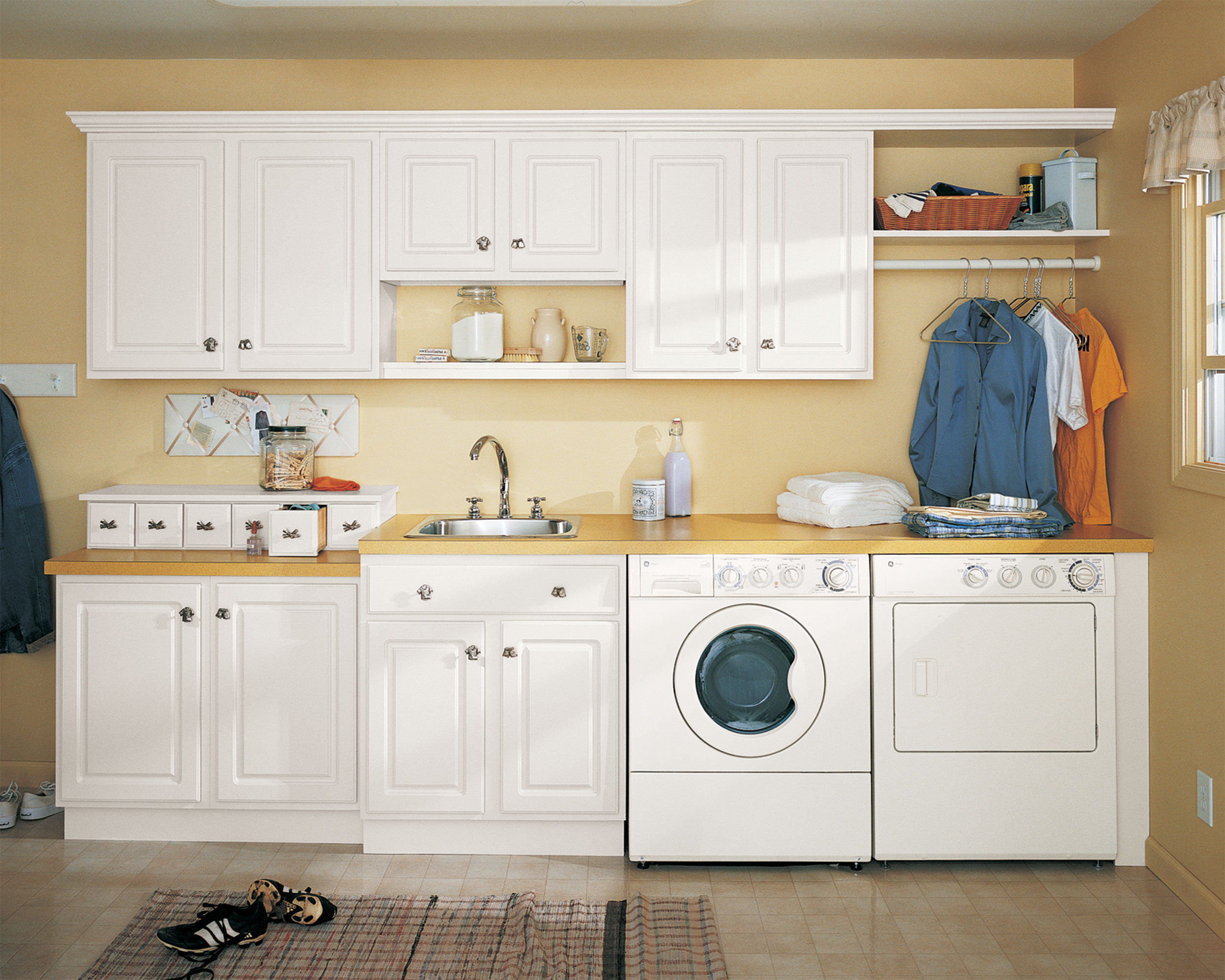 Description: A kitchen with a washer and dryer in it and a window above the washer and dryer.