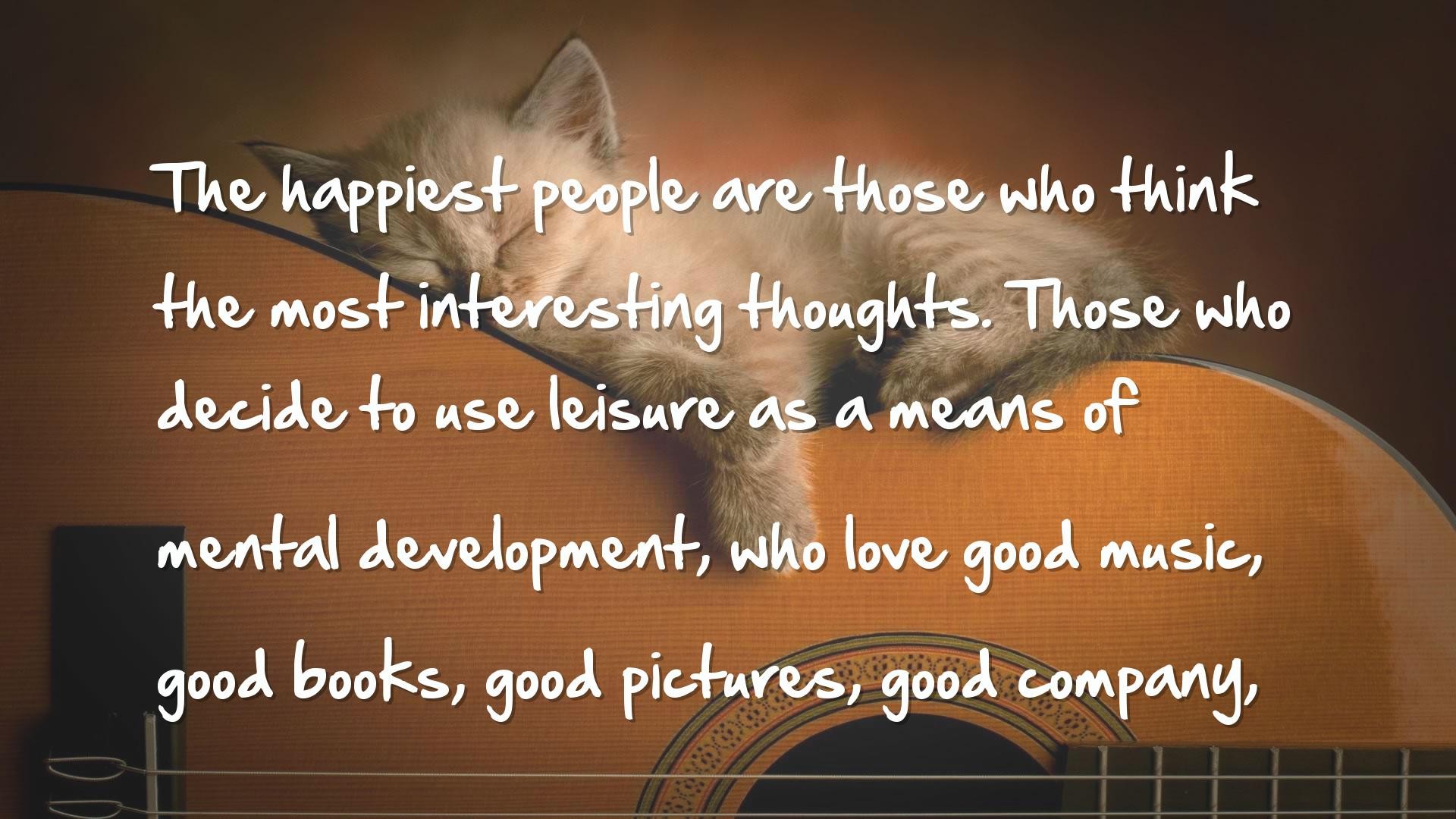 Description: A kitten sleeping on top of a guitar with a quote about the people who think the most interesting thoughts.