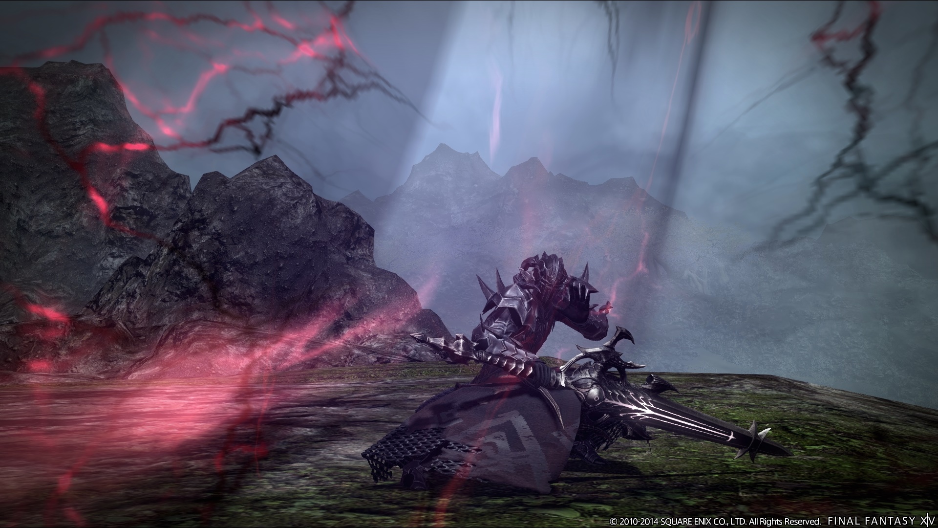 Description: A computer generated image of a knight on a motorcycle in a forest with red flames coming from the ground.